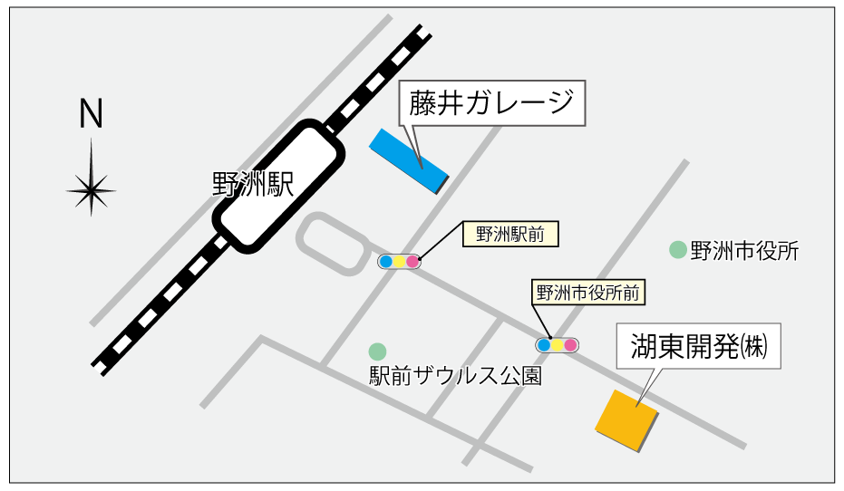 ㈱藤井ガレージはJR野洲駅南口の前にあり、駐車場は屋根付きガレージを備え、原付バイク、自転車も収容可能です!